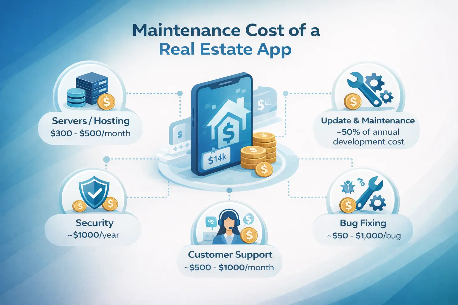 The minimum real estate app development cost for a basic functional solution in India starts at $12,000.